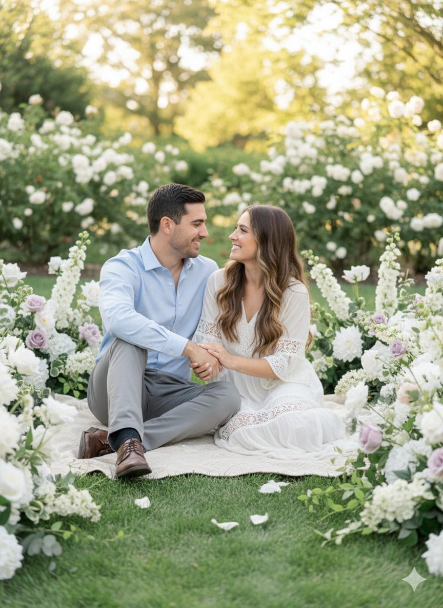 Transform your engagement photos into a dreamy, romantic experience with our Helena Aisle Meadow Engagement Shoot Rental. Featuring lush white blooms, soft greenery, and delicate touches of pastel florals, these aisle meadows create a whimsical garden setting anywhere you choose. Designed to frame couples beautifully, the Helena meadow brings elegance, romance, and a natural glow to every photo. Whether you’re planning an engagement session, styled shoot, or anniversary photos, this rental elevates your backdrop with timeless floral artistry.